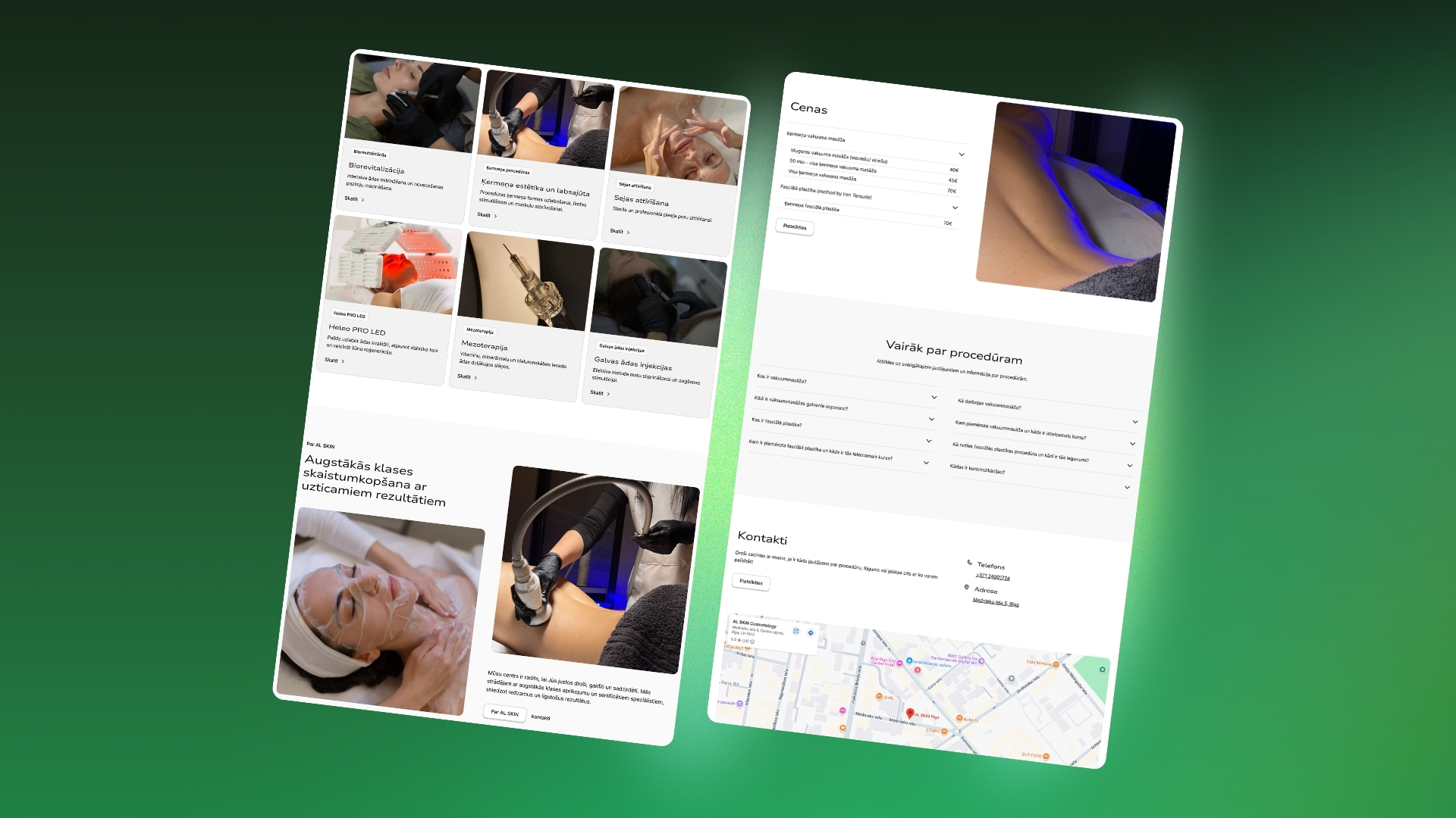 Papildus izveidojām par mums, cenu un kontaktu lapas, lai stiprinātu uzticamību un nodrošinātu visu nepieciešamo informāciju vienuviet. Mājaslapu izstrādājām trīs valodās un pielāgojām visām ierīcēm, nodrošinot ērtu lietošanu gan mobilajos, gan datoros.