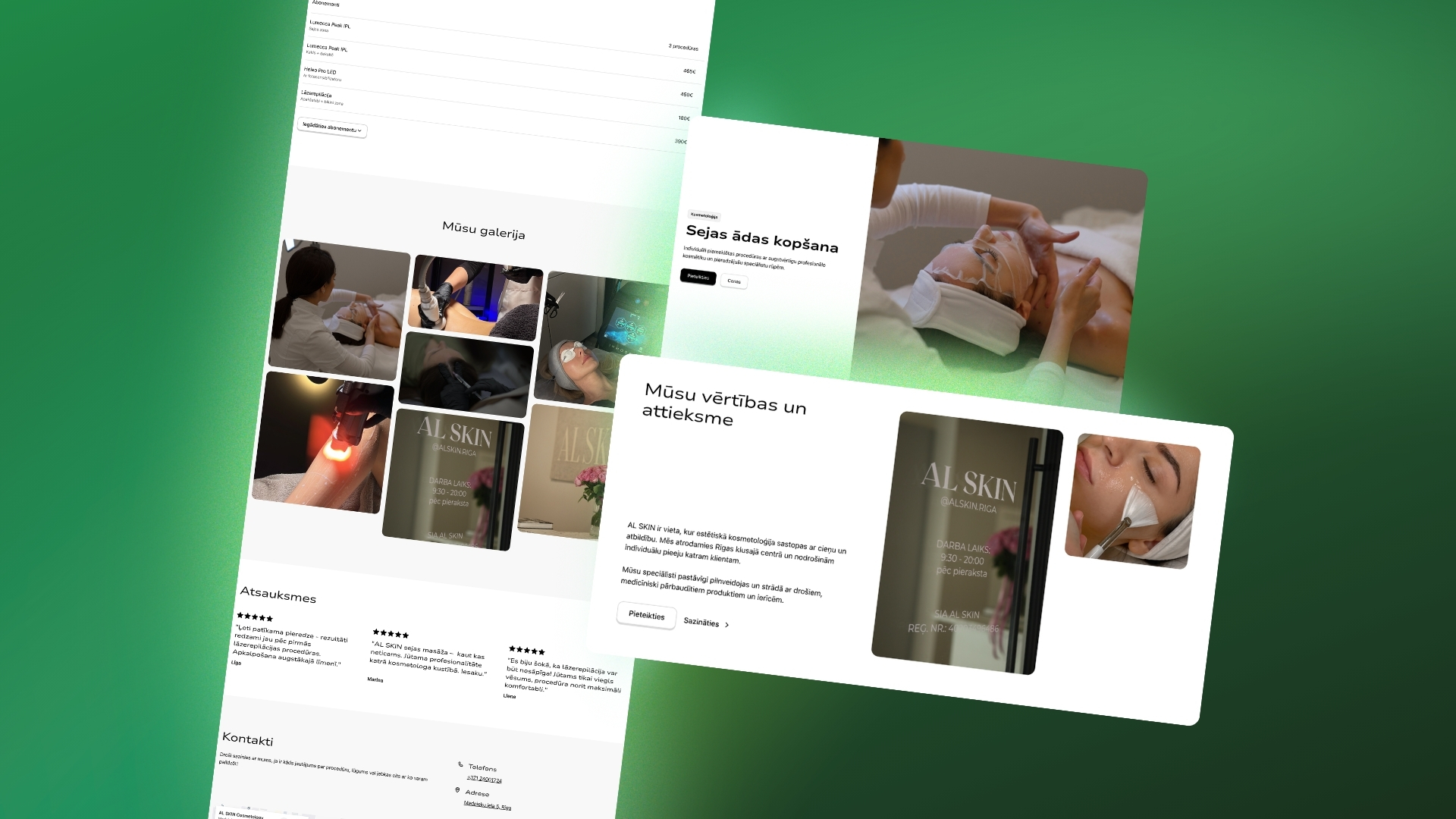 Izstrādājām Alskin.lv mājaslapu, kas skaidri un strukturēti prezentē uzņēmuma skaistumkopšanas pakalpojumus, tostarp lāzerepilāciju, ķermeņa procedūras, kosmetoloģiju un injekciju pakalpojumus. Izveidojām CMS balstītas pakalpojumu lapas ar detalizētu informāciju, cenām, FAQ un pieteikšanās iespējām, kā arī atsevišķas sadaļas par uzņēmumu, cenām un kontaktiem. Mājaslapa izstrādāta trīs valodās ar modernu dizainu, kas atbilst uzņēmuma vizuālajai identitātei, un optimizēta konversijām, mobilajām ierīcēm un SEO pamatiem.